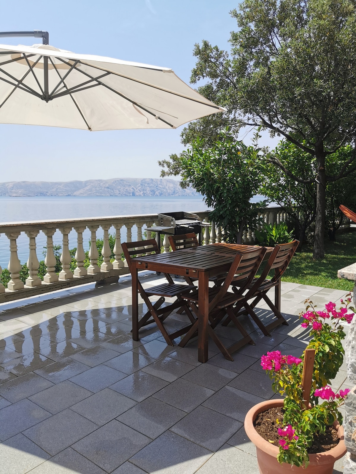 Apartamento nuevo con vistas increíbles al mar y justo al lado de la playa. La casa se encuentra fuera de la ciudad en un barrio tranquilo, entre pinos y plantas. Es un lugar estupendo si buscas relajarte, disfrutar de la playa, el sol y el aire fresco. Puedes utilizar la parrilla de piedra tradicional para cocinar el pescado que puedes obtener de los pescadores locales. Disfruta de tu comida en el balcón con sombra natural de pino. Puedes experimentar el ocasional y famoso viento Bura que hace que nuestro mar esté limpio y tiene beneficios respiratorios comprobados.