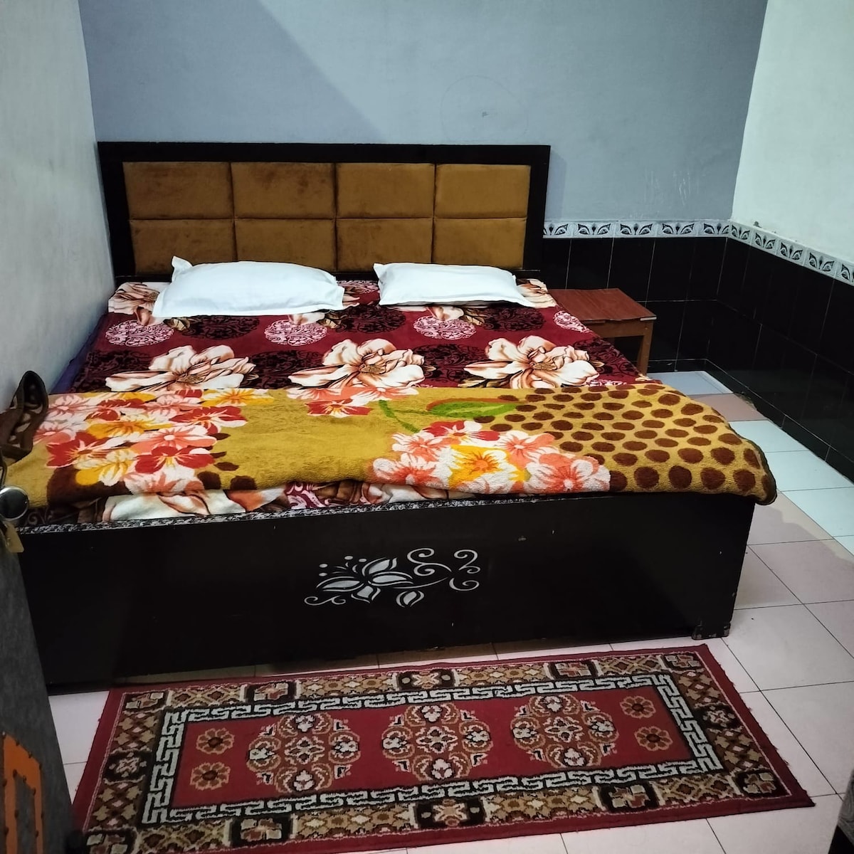 Situado muy cerca del templo Banke Bihari, este lugar está justo en el centro de Shri Vrindavan. Todos los demás templos, mercados y restaurantes están a tu alcance. Esta habitación forma parte de la casa de huéspedes Shri Sai Sharnam, que tiene 4 habitaciones de este tipo.