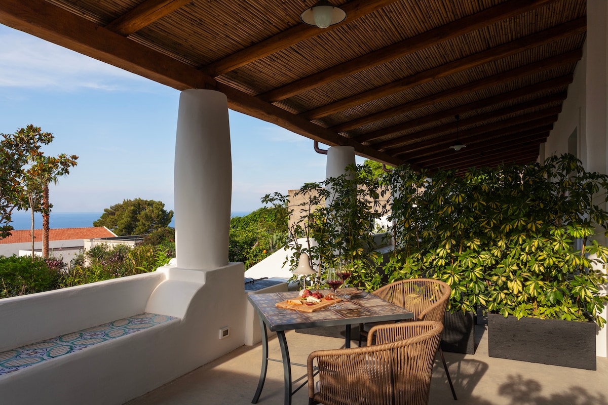 Habitaciones de estilo típico eólico, rodeadas de elegantes espacios, solarium, jacuzzi al aire libre y amplias terrazas panorámicas, diseñadas para unas vacaciones gestionadas en un ambiente familiar y sin restricciones. Ten en cuenta que nuestros huéspedes podrán usar la bañera de hidromasaje al aire libre de mayo a septiembre , cuando el clima lo permita. servimos estrictamente todo el desayuno italiano dulce, no servimos salado, de 8:30 a. m. a 10:30 a. m. Tu casa en Salina...