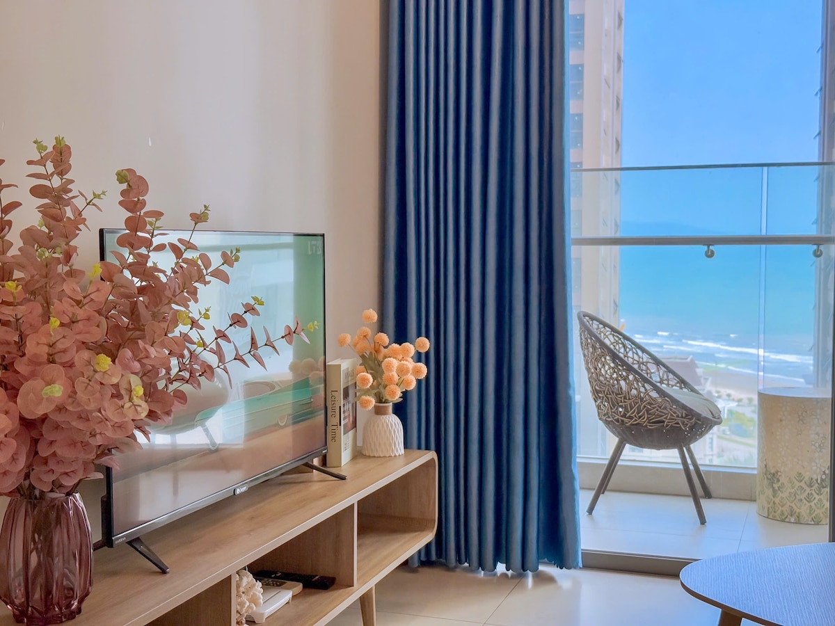 Apartamento minimalista y totalmente amueblado de 1 habitación en el piso 15 con espectaculares vistas al mar. Ideales para parejas o familias con un niño menor de 5 años. Perfectamente situado junto a la playa trasera (playa de Thu ! Vân). Horarios estimados para caminar a los servicios cercanos: - A 2 minutos de la playa al otro lado de la calle. - A 5 minutos de la tienda de comestibles más cercana las 24 horas, los 7 días de la semana (GS25) - A 8 minutos del supermercado más cercano (Lotte Mart). Ascensores rápidos. Netflix gratuito. También tenemos una moto disponible para alquilar.