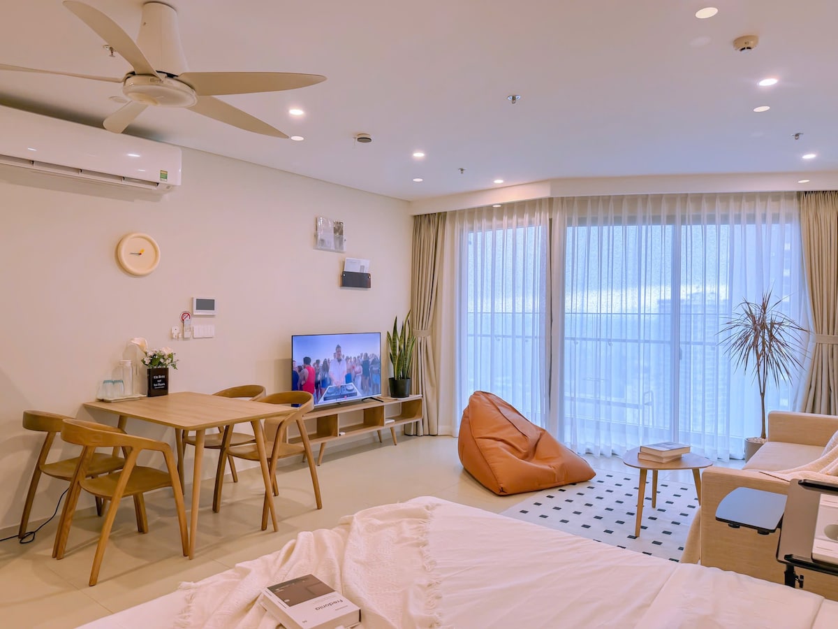 Mia Home se encuentra en el piso 35 de The Song Building, a 1 piso de la piscina en la azotea. El apartamento está diseñado en estilo vintage, romántico y acogedor, más adecuado para parejas o grupos de amigos que aman el ambiente romántico pero que aún quieran un poco de comodidad moderna. Servicios gratuitos que puedes disfrutar durante tu estadía: - Piscina Infinity Rooftop (cerca el lunes). - Sauna y gimnasio. - Parque acuático: piscina para niños (cierra el jueves). - A 5 minutos de la playa y a 5 minutos del supermercado más cercano.