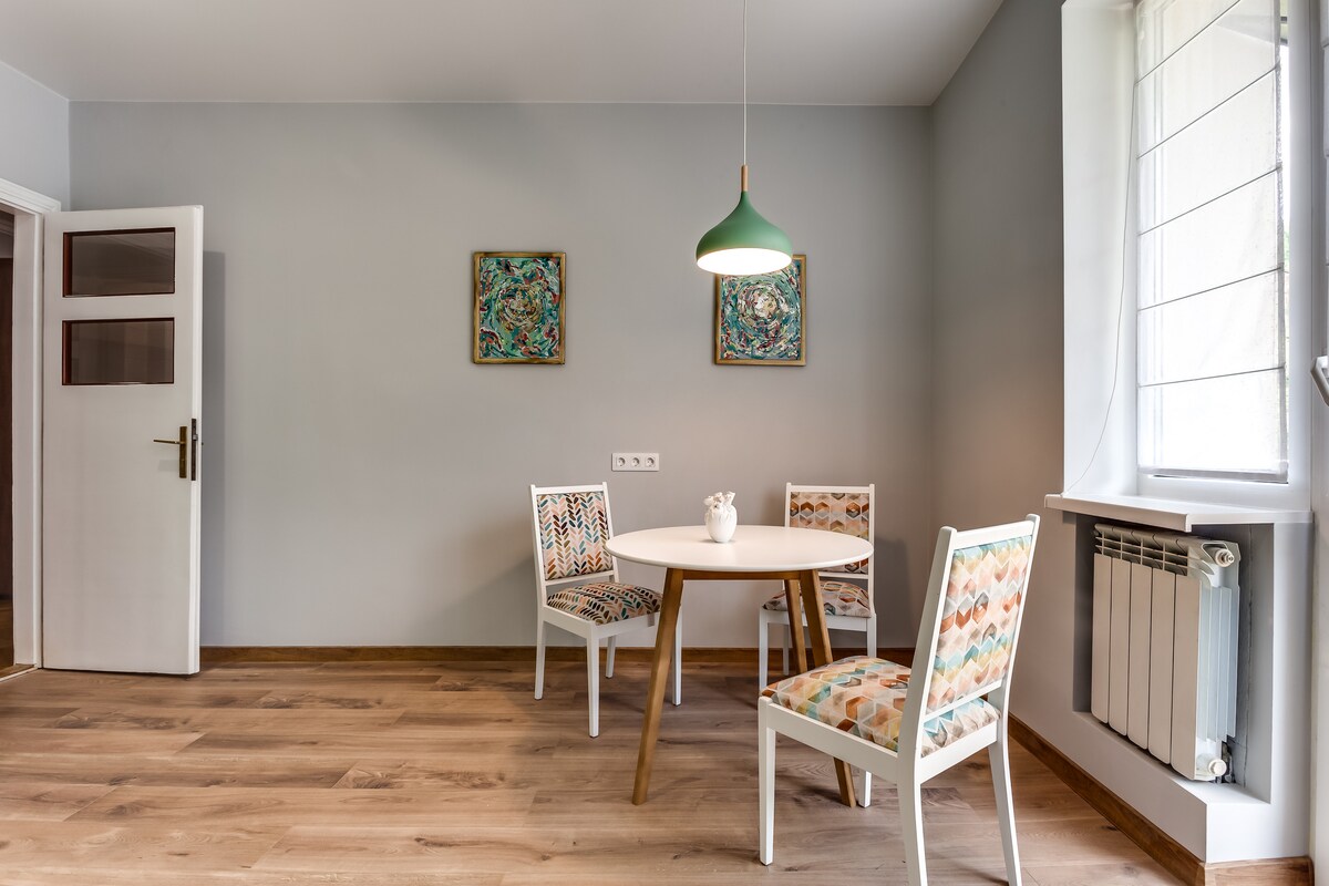 El nuevo apartamento en el corazón de la ciudad, ubicado en una calle tranquila, te permitirá relajarte a pesar del ruido fuera de la puerta. La habitación tiene todo lo que necesitas incluso para tu estancia larga: cocina equipada, nevera, placa de inducción y todo lo que necesitas para cocinar, lavadora con secadora, internet y televisión inteligente. Cerca de restaurantes, lugares de entretenimiento, catedral, acuario. Bienvenido🩵💛