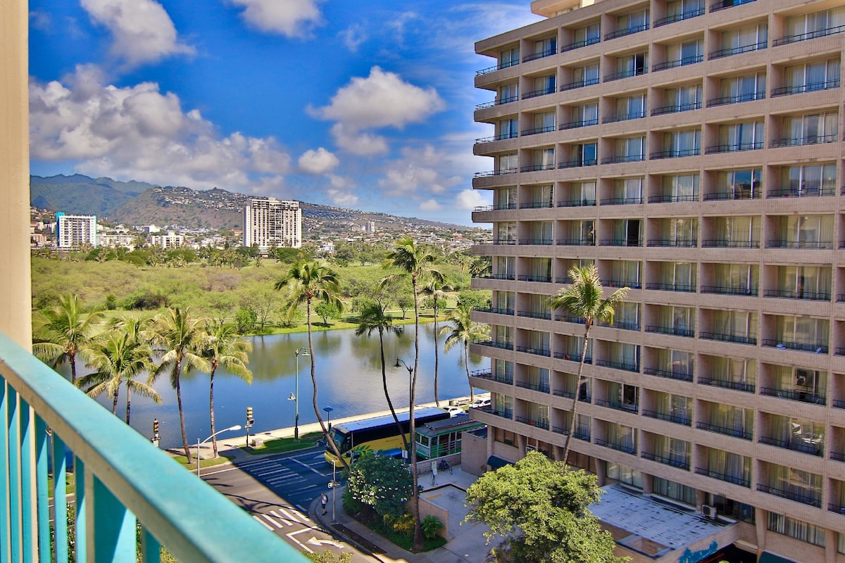 Este cómodo estudio en Palms at Waikiki tiene dos camas queen que pueden alojar cómodamente a 3-4 adultos. Ideal para familias, parejas o negocios. ¡Idealmente ubicado justo enfrente del Hilton Hawaiian Village, laguna y océano! Todo está a poca distancia a pie, incluido el Centro de Convenciones, el centro comercial Ala Moana, el parque de playa Ala Moana y la isla mágica, con numerosos espacios abiertos cerca para actividades de ejercicio, playa y mar. Estacionamiento disponible por aproximadamente $45/día + impuestos.