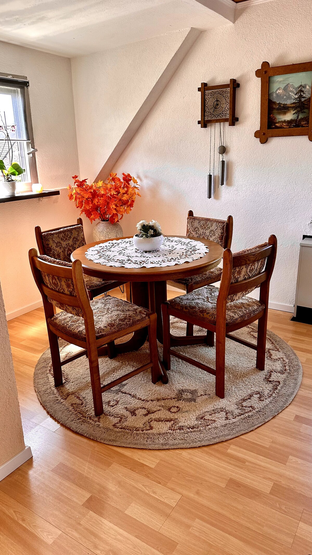 Bonjour Chers Voyageurs Nous proposons un appartement confortable, entièrement rénové à neuf, moderne, très bien équipé, situé à la campagne avec de nombreuses possibilités de promenades bucoliques. Vue agréable de la terrasse, accès privatif, parking privé Gratuit pour deux véhicules où plus si vous attendez des visiteurs. Calme silencieux la nuit, la nature à portée de vues tout autour, une Boulangerie " Rechter Backstube" 10 minutes en voiture, une supérette, un marchand de vin.