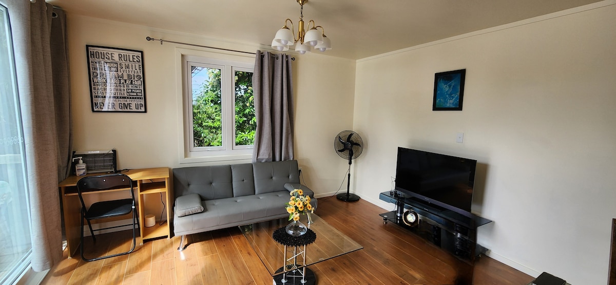 🏡 Bienvenido a nuestra propiedad en la costa norte de Auckland. Este anuncio es para toda la planta baja independiente con entrada privada. Diseñado para ofrecer una estancia cómoda, práctica y tranquila. Tu espacioso santuario incluye: • Cocina completa, salón-comedor, dormitorio y baño. Ubicación privilegiada con fácil acceso a: • Ciudad y playas a través de la autopista cercana. • Centro comercial Glenfield, supermercados y restaurantes (5 minutos en coche). Ideal para: familias, viajeros y grupos pequeños.