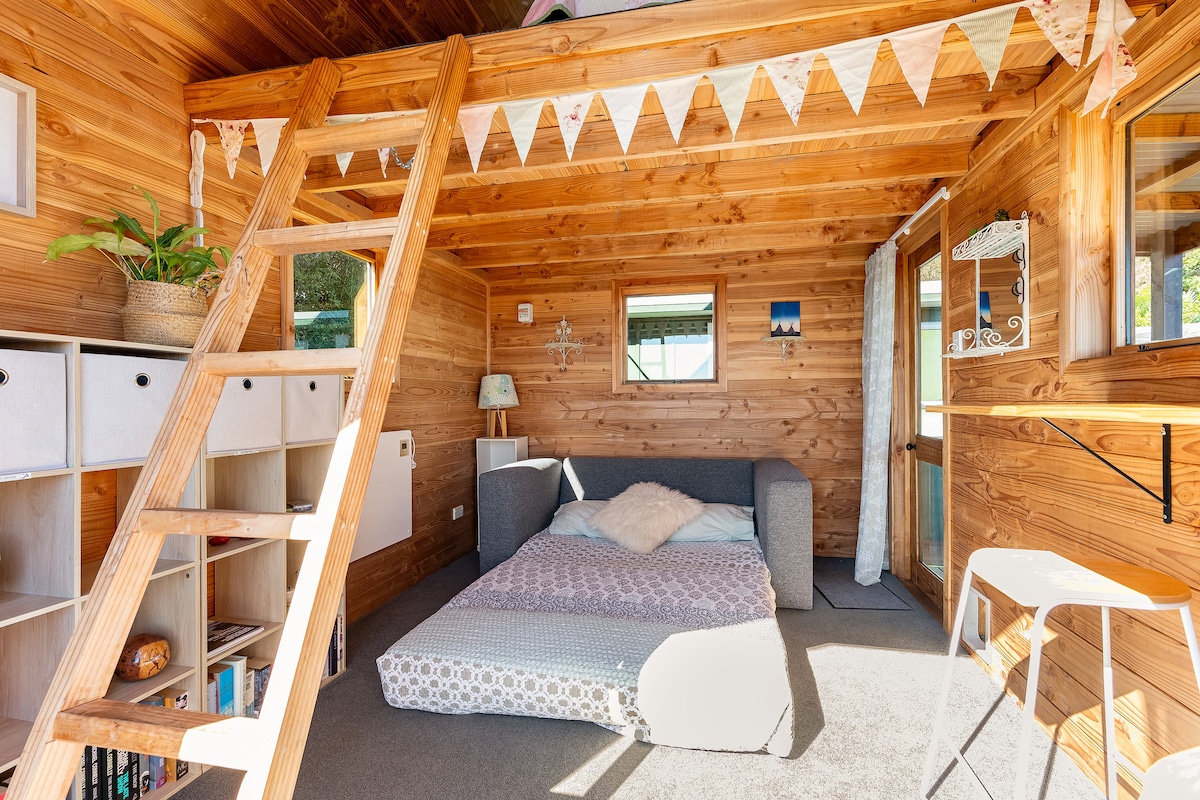 Esta es nuestra pijama ubicada junto a nuestra casa familiar. Es artístico y tranquilo. Se encuentra dentro de una propiedad de 1 ha con árboles frutales establecidos y muchas cosas para que las familias hagan y jueguen. La pijama tiene un espacio de lavado/cocina pequeña y un baño separados, a unos 7 metros de la zona para dormir. La playa está justo enfrente de la casa y Mapua está a 2 minutos en auto. Es un espacio ideal para aterrizar antes y/o después de una caminata en el Abel Tasman, que está a solo 30 minutos de nosotros.