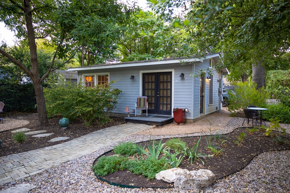 Relajarse es fácil en esta espaciosa casa de huéspedes tipo estudio. Ubicada bajo los robles en el patio trasero de una casa histórica restaurada con cariño, esta «petite maison» privada tiene todo lo necesario para disfrutar de una noche de descanso perfecta después de ver todo lo que Austin tiene para ofrecer. Cocina completa y baño, colchón tamaño queen Nectar, preciosos espacios al aire libre y jardines. Despiértate con el sonido relajante de una fuente de agua a la puerta de tu casa. Cerca de UT, el centro de la ciudad, restaurantes y tiendas. Ve a buscarlo y vuelve a la paz y la tranquilidad.