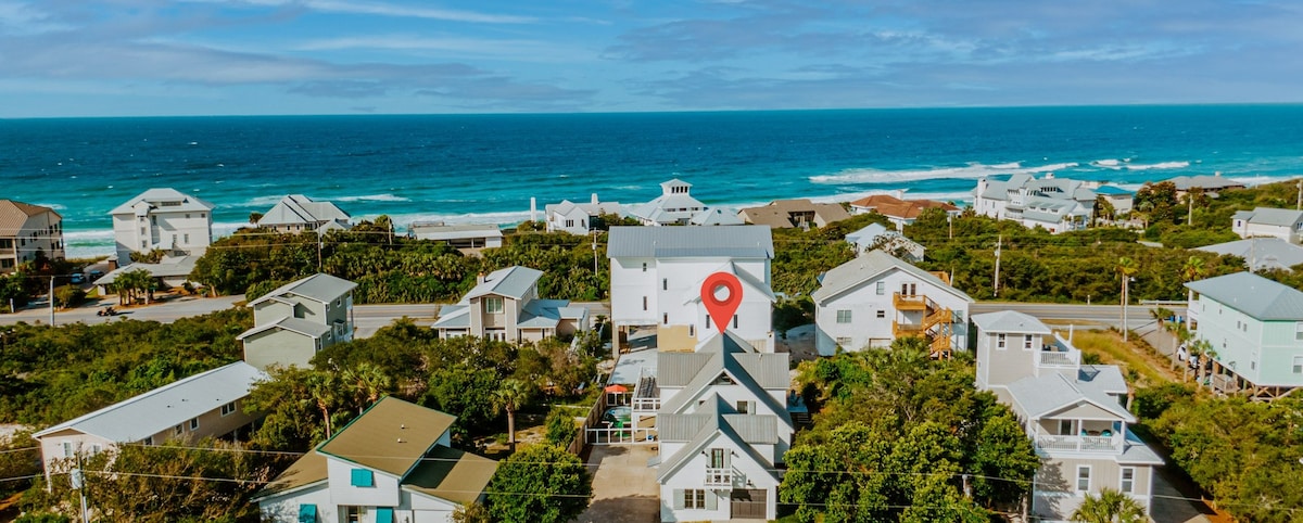 ¡Tu escapada de ensueño al Golfo! «HIDDEN PEARL B» está diseñado para familias. Se encuentra a 3 minutos a pie de la playa. La terraza de la azotea cuenta con vistas al golfo, spa, cocina al aire libre, chimenea y TV. Capacidad para 11 personas. Gran piscina de agua salada que se puede calentar por una tarifa (detalles a continuación) con toboganes de piscina. ¡Juego de barcos piratas, adorable habitación con literas, sala de juegos bien equipada, camas tamaño king para adultos! Ofrecemos wifi súper rápido. La casa tiene capacidad para 11 personas. Está a solo 10 minutos en auto de Pier Park y a 7 minutos de Rosemary Beach y 30A.
