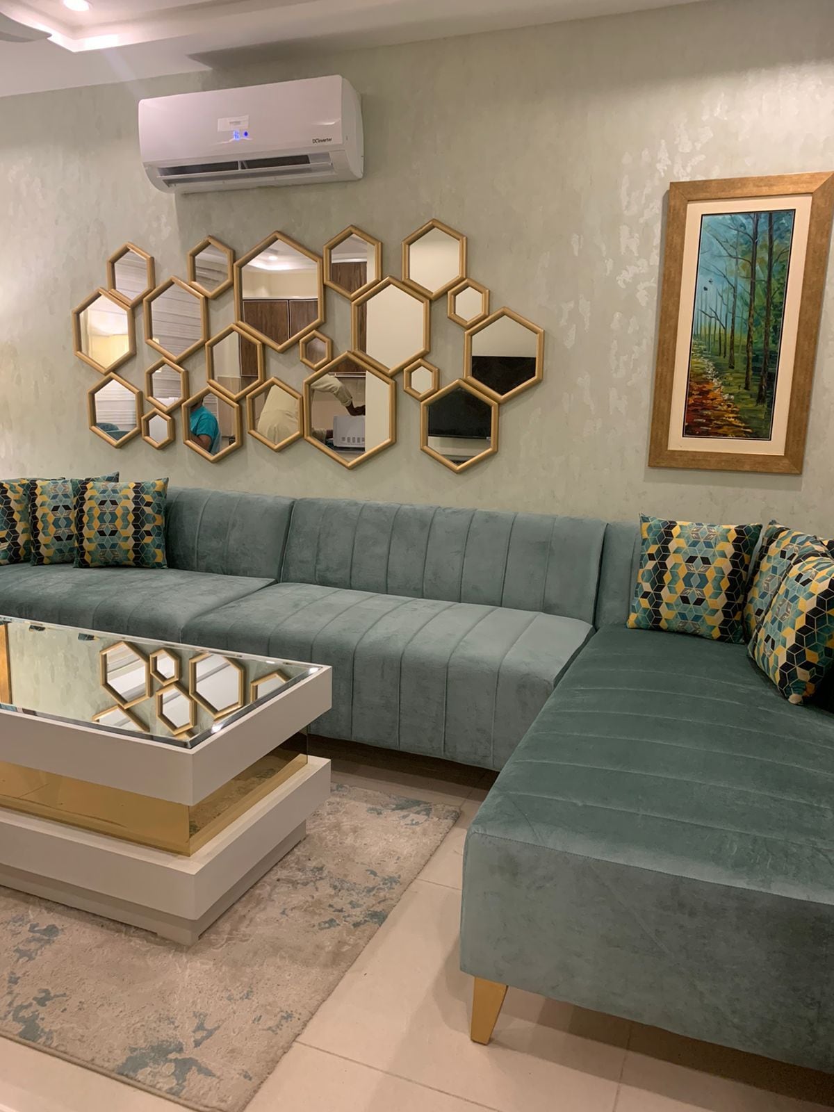 Luxury one-bedroom modern apartment located near KFC in Sector C, Bahria Town Lahore. The apartment is on the 3rd floor with a beautifully designed elevator. Safe, secure, and serene environment with a caretaker to assist guests. Optimum security mechanism inhouse and on street in this community. Ideal for families, travelers, and guests coming from abroad. All necessaries are available at a stone's throw. High-speed WIFI is available. Discounts (16% on weekly and 27% on monthly bookings)