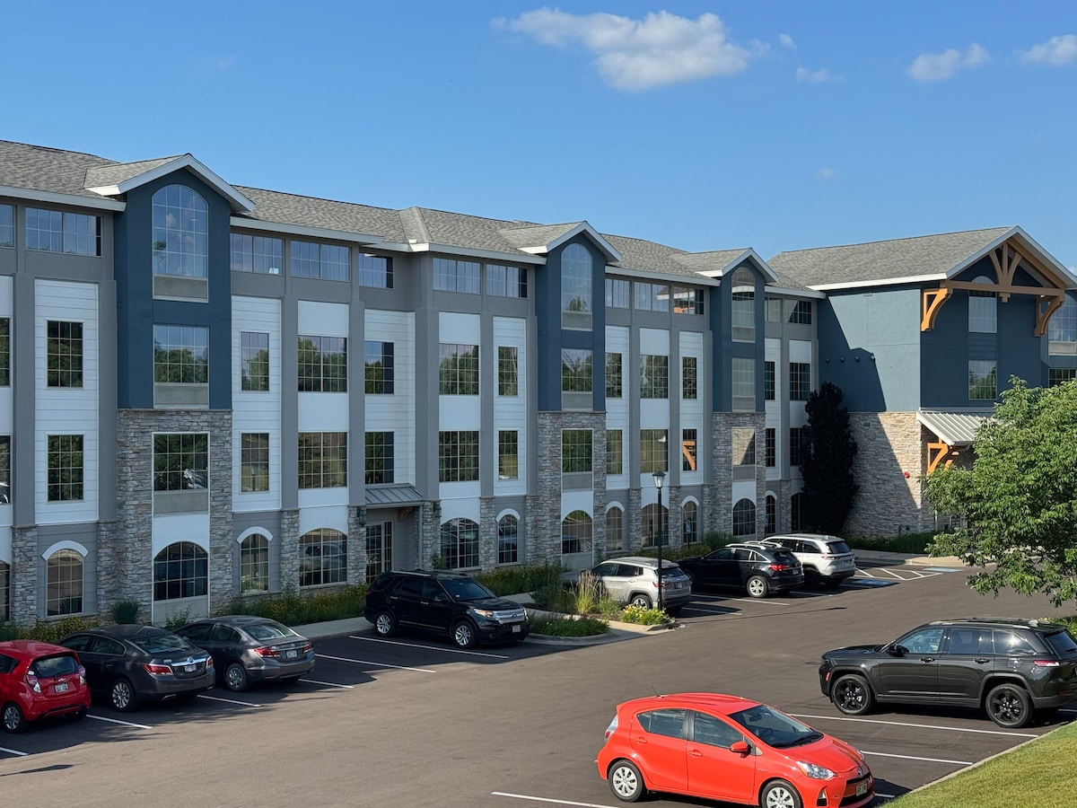 4 mi to Downtown Lake Geneva, WI. Rent kayaks on Lake Como. New pool and tennis courts, amazing wildlife. Snowboard, cross country ski, sled on hills during our amazing Wisconsin winters. Dine at The Ridge restaurant CRAFTED or just buy a bottle of wine from the guest store and watch the sunset. Quiet corner of the condominium complex. Completely furnished. Beautiful comfortable King size bed, kitchen, cook and eat in! Balcony overlooking peaceful grounds. Private entry, laundry in building.