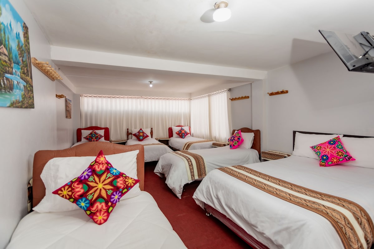 Disfruta de una estadia agradable en un lugar con muy buen ambiente y sobre todo seguro . Ubicado en el corazon del Centro de Cusco a menos de media cuadra del Mercado de San Pedro y de la estacion de tren de San Pedro, fácil acceso a tiendas atractivos turisticos y de la Plaza de Armas. Habitacion con Smart Tv, Internet de alta velocidad, Baño privado con agua Caliente garantizada las 24 horas del dia.
