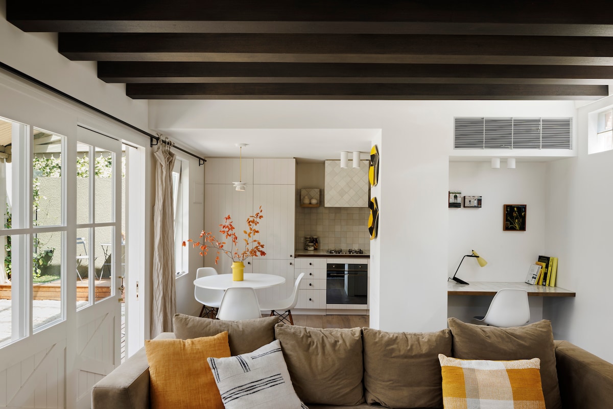 Este establo reconvertido se ha transformado ingeniosamente en un encantador escondite de dos niveles. Repleto de detalles a medida, iluminación vintage, arte local y capas de personalidad, es una verdadera joya. A solo dos minutos a pie de las bulliciosas calles Gertrude St, Smith St y Brunswick, donde se encuentran los mejores bares, comida y cultura de Melbourne. El mercado de Rose st está a poca distancia a pie, al igual que el MCG, los jardines de exposiciones y el centro de tenis. En la cúspide del CBD, esta ubicación fusiona historia, estilo y comodidad inmejorable.