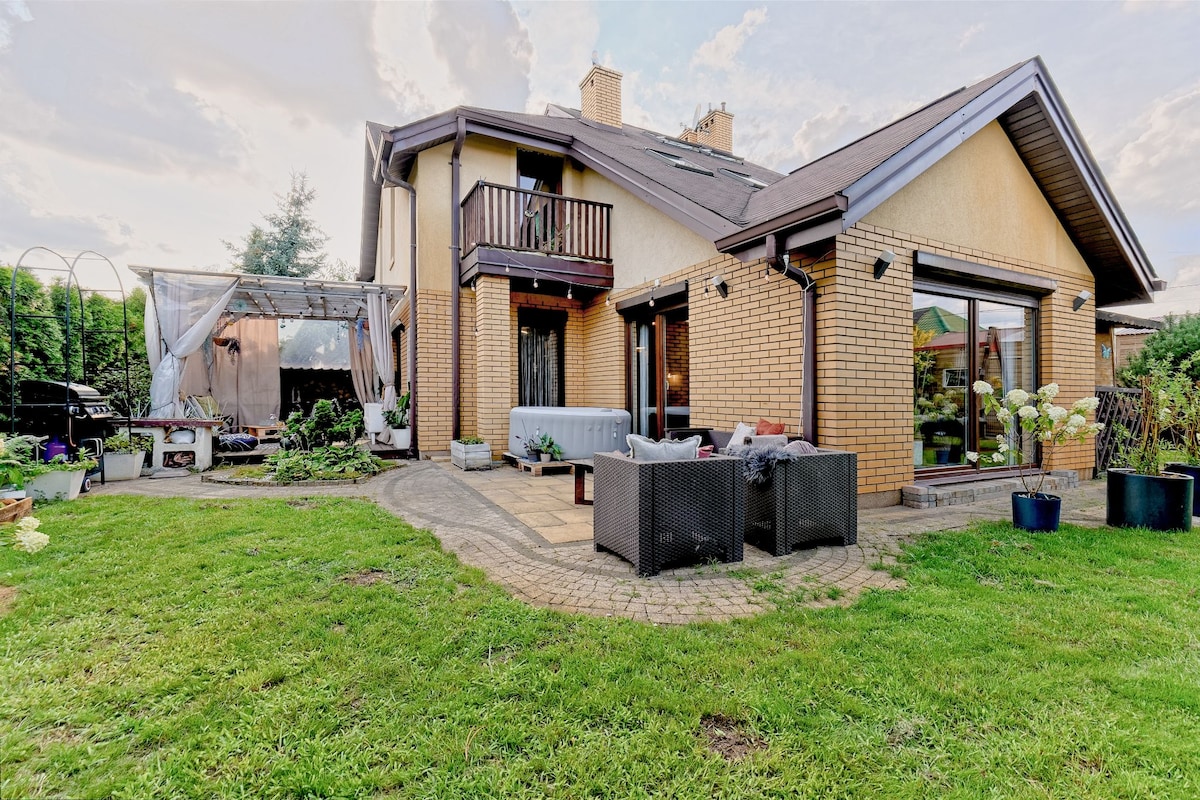 Przestronny dom (230mkw) dla 6 osób w pięknym ogrodzie z jacuzzi . Dla gości są: na parterze salon z jadalnią, kuchnia, sypialnia dzieci łazienka z wanną i prysznicem, na poddaszu sypialnia z rozkładaną sofą, sypialnia , mini kuchnia z pralką i suszarką, łazienka z prysznicem i mini biblioteka. Dom znajduje się w zacisznym, pięknym ogrodzie z jacuzzi, miejscem wypoczynkowym i stołem. Dom posiada dwa balkony. przed domem znajduje się parking dla jednego samochodu z automatyczną brama.