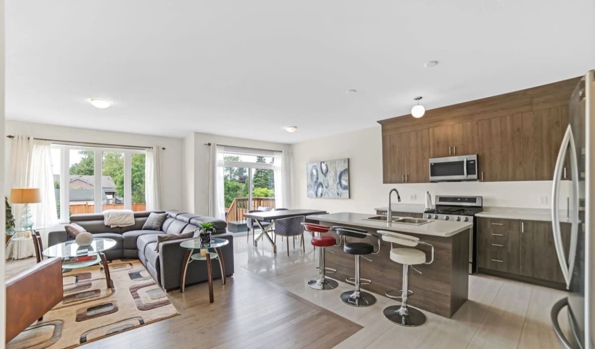 ¡Bienvenido a nuestro encantador apartamento en la planta principal en la hermosa ciudad de Orillia! Este espacio es adecuado para familias o grupos pequeños que buscan una estancia cómoda en una ubicación conveniente. Esta es una casa totalmente amueblada que cuenta con tres dormitorios, un baño, una cocina totalmente equipada con todos los elementos esenciales necesarios para preparar tus propias comidas. La sala de estar es luminosa y acogedora, con un televisor inteligente Samsung de 43 pulgadas que incluye Netflix, internet de alta velocidad ilimitado y una amplia mesa de comedor de 6 plazas.