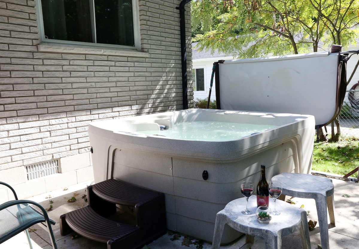 ¡Te damos la bienvenida a The Boho Hideaway! ¡La escapada perfecta en las 4 estaciones, cerca de las colinas de esquí y las playas en la comunidad junto al lago de Midland, ON y la bahía Georgiana! ¡Relájate en este acogedor bungalow con jacuzzi privado y sauna! Disfruta de 5 dormitorios espaciosos, 2 cocinas, 2 salas de estar y sala de juegos. ¡Hay mucho espacio para que tu familia y amigos se extiendan cómodamente! Abrígate en las noches frías y asa nubes de azúcar en una chimenea de leña o acurrúcate junto a la mesa de fuego bajo la noche estrellada.
