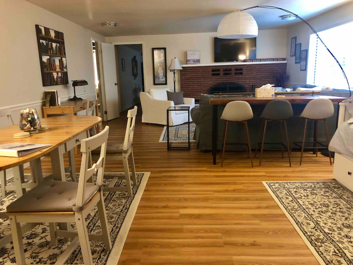 ¡Te damos la bienvenida a Sherwood Hollow! Este refugio completamente renovado es una gran suite de 1200 pies cuadrados en nuestra casa de los años 60. Esta espaciosa zona tiene una gran sala de estar, cocina comedor y una habitación espaciosa. La unidad es privada y está completamente cerrada desde la planta superior. Nuestra casa se encuentra a pocos pasos del casco antiguo de Sherwood y del hermoso parque Stella Olsen. Esta unidad está cerca de la parte inferior de una colina, un poco de subida desde el casco antiguo, y el camino de entrada está en una pendiente.