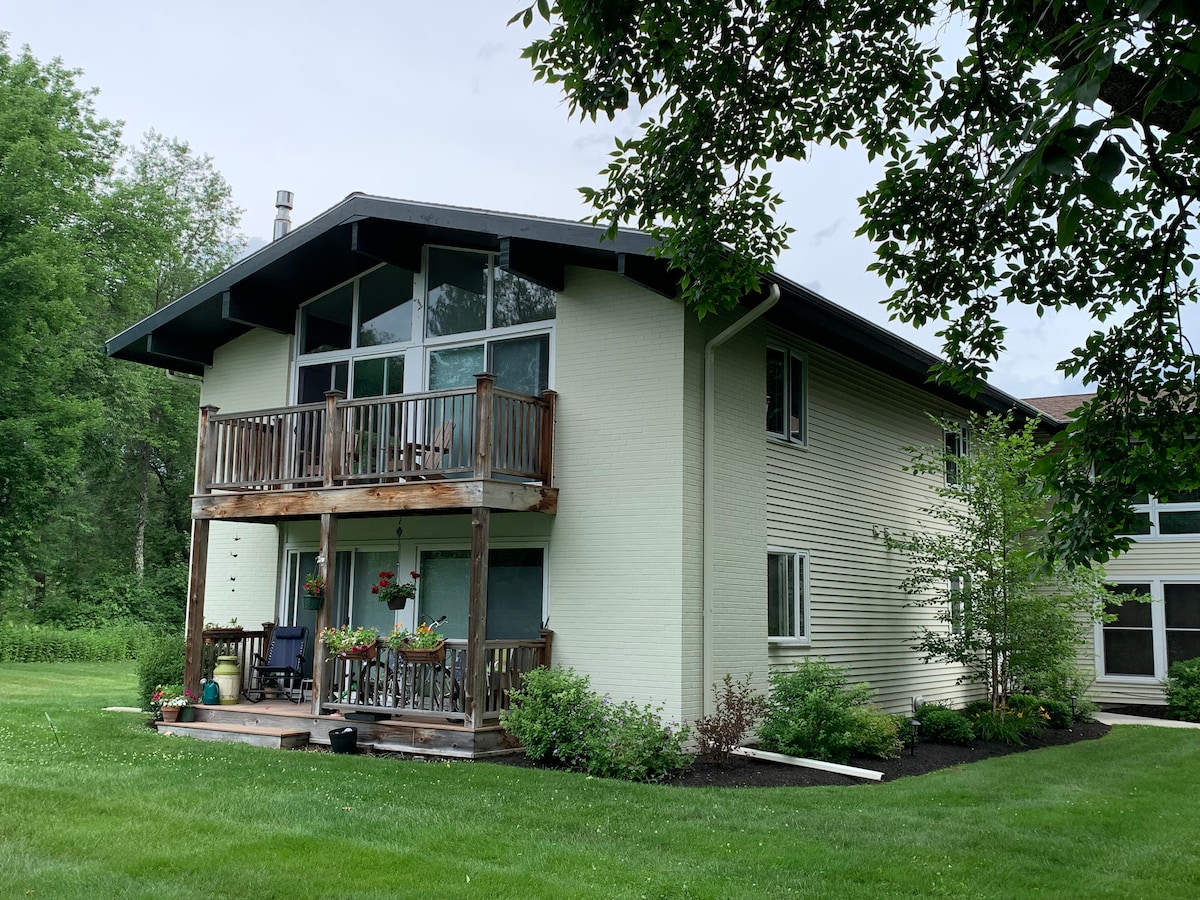 Fully renovated in 22/23 a high-end, modern, farmhouse style 2,000 sqft open floor plan condo/apt, with 2 large decks and outdoor space, with a firepit and newly installed AC and private access to Hot Tub! Perfect for entertaining and family gatherings. The living room, kitchen, and dining room are all open with lots of seating. In the summer and fall, open the doors to the expansive decks with an outdoor dining table, couch, and hammock! Enjoy family/friend time with a fire in the backyard.