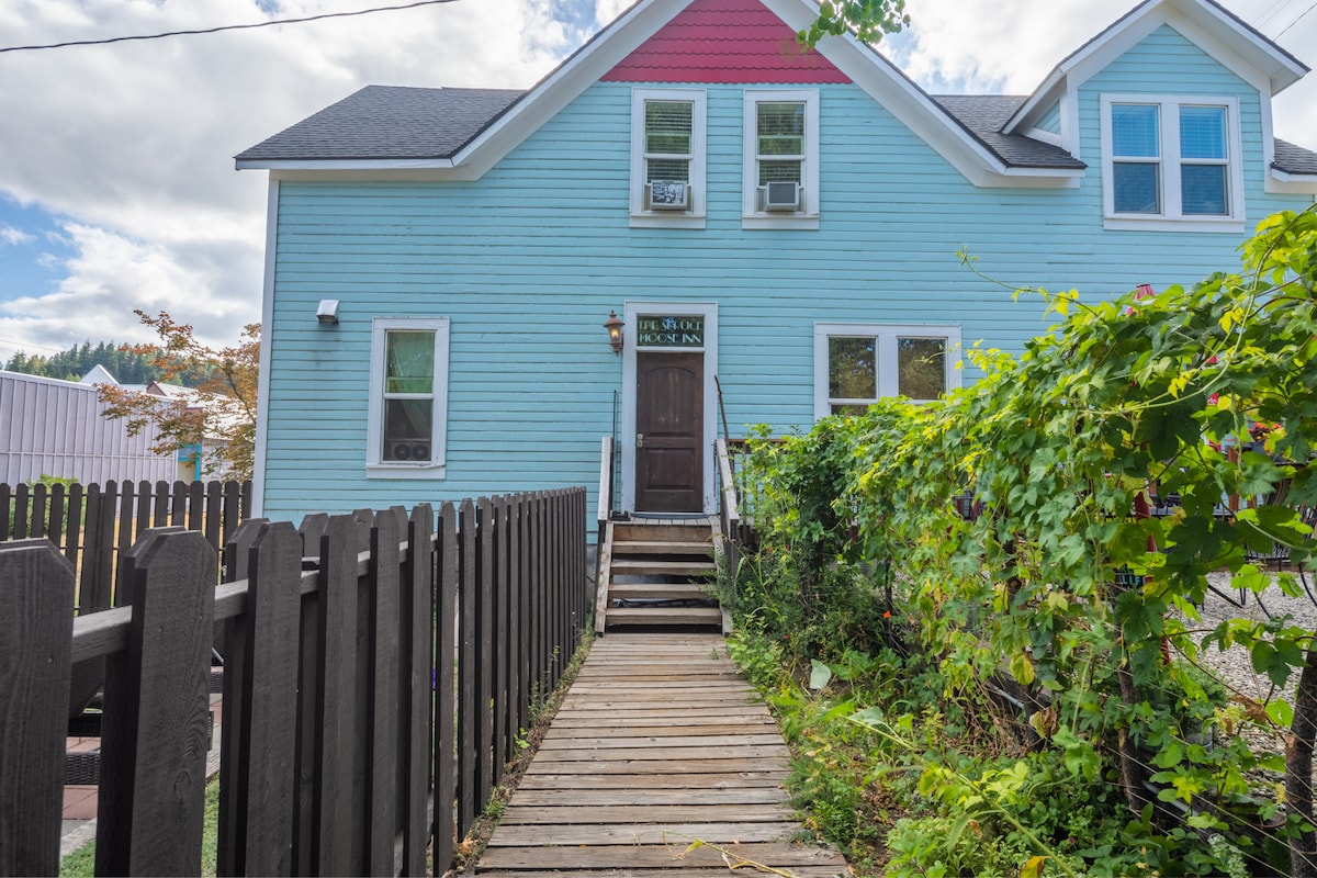Esta es una habitación con una cama tamaño queen individual, baño al final del pasillo. Cascadia Inn Skykomish es un hotel histórico con cafetería y salón en el distrito histórico de este pequeño y pintoresco pueblo de montaña. Estamos ubicados a lo largo de la todavía activa línea ferroviaria BN (anteriormente Great Northern). Todas las habitaciones están arriba, con un pequeño vestíbulo, cafetería y bar abajo. También hay una sala de estar/TV separada para huéspedes en la planta baja. Ofrecemos todas las habitaciones privadas, nueve tienen baño al final del pasillo.