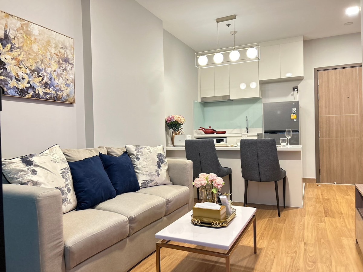 👉👉Confía en mi esfuerzo, confía en tu juicio👏👏 [Nombre del apartamento] Este apartamento está ubicado en The Astra Sky River, es el apartamento de más alta calidad en Chiang Mai. [Ubicación] Situado en la zona comercial de la calle Changkang, en el centro de la ciudad, con fácil acceso. Enfrente del apartamento está Curve Square, donde hay tiendas 7-11, cafeterías, KFC, etc. A 1 km del mercado nocturno de Langkang Road; 1.4 km de la ciudad vieja; 5 km de Ningman Road; 5 km del aeropuerto. [Puntos destacados]: Lo más famoso de este apartamento es la piscina en la azotea de 150 metros de largo, única en Chiang Mai y espectacular. Desde la piscina de la azotea se puede disfrutar de una vista panorámica de la ciudad de Chiang Mai y de la puesta de sol más hermosa en el monte Doi Suthep. [Instalaciones] Las instalaciones son muy completas, gimnasio, sauna, sala de yoga, sala de reuniones, sala de estar, espacio de trabajo conjunto, etc., todos de uso gratuito. El apartamento también tiene un amplio estacionamiento, con muchas plazas de aparcamiento, muy conveniente. Seguridad: cuenta con el sistema de seguridad más avanzado y el equipo de seguridad más profesional, por lo que es seguro y sin preocupaciones. [Descripción del alojamiento] Está viendo una suite de 1 dormitorio, un pequeño apartamento compacto en un piso alto, ubicado en el piso 11, con un área de 35 ㎡. Tiene 1 dormitorio privado, 1 baño completo, 1 sala de estar, comedor abierto y cocina, ideal para 1 o 2 personas. El interior es amplio y luminoso, cuidadosamente diseñado, decorado con buen gusto, cálido y confortable. Todas las pinturas son obras originales de artistas locales de Chiang Mai, hechas a medida para este conjunto de habitaciones, dibujadas a mano y únicas.