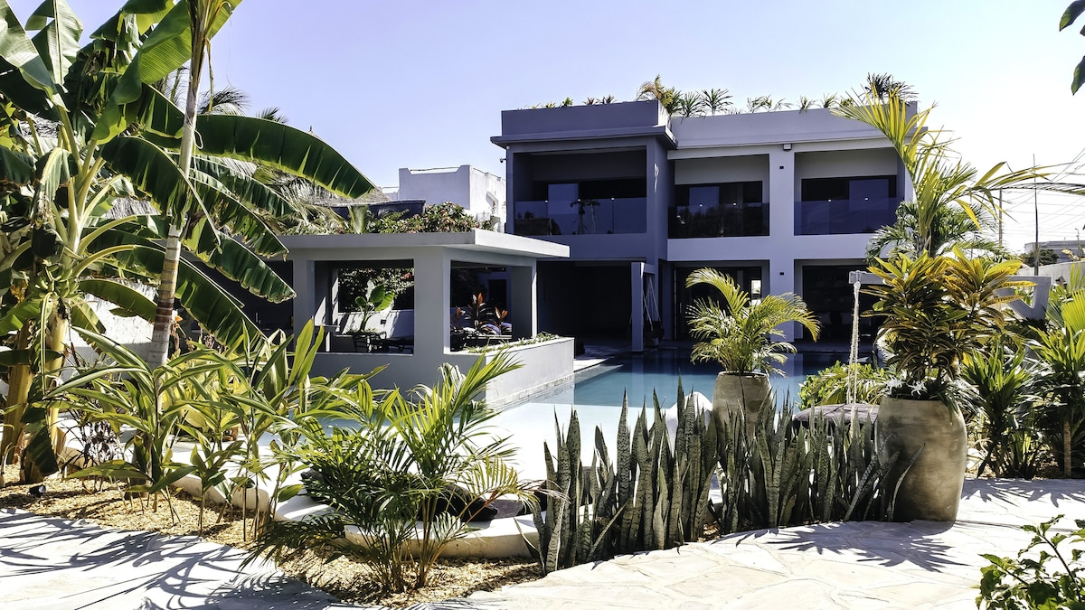 Villa Samawati, en el lujoso Rafiki Village, te espera a 800 m de Seven Island y Love Island. A un paso de servicios y playas. El centro de Watamu y los puntos de interés están a 10 minutos a pie. Ideal para todos. Y la gran noticia: cuenta con un sistema fotovoltaico que garantiza una energía continua, incluso con apagones, ¡para una estancia siempre tranquila y sin preocupaciones! Servicios completos: lavandería, limpieza diaria, cambio de ropa de cama, cocina, ducha al aire libre, masaje y zona de relajación con baño