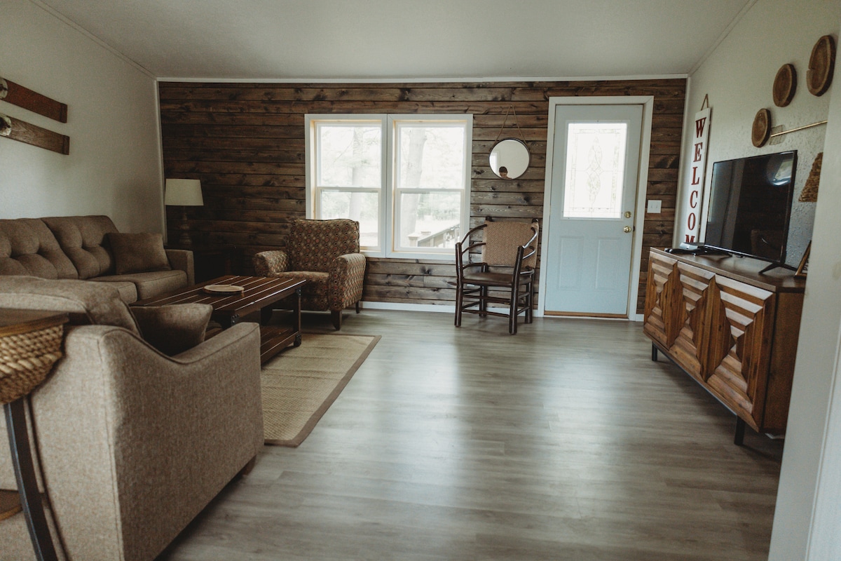 ¡Ven y disfruta de la vida frente al lago y del aire libre en nuestra casa de campo! A 3 horas y 15 minutos en auto de Chicago, o 2 horas de Madison te llevará a nuestra escapada relajante. Nuestra cabaña de 3 dormitorios y 3 baños completos tiene capacidad para 8 personas. Es perfecto para 2 familias con niños con 2 dormitorios principales en suite y una litera. Se puede asear para mascotas. Hay canoas y kayaks disponibles para los huéspedes. ¡La pesca aquí es increíble! En invierno, ¡estamos a 10 minutos de la montaña nórdica!