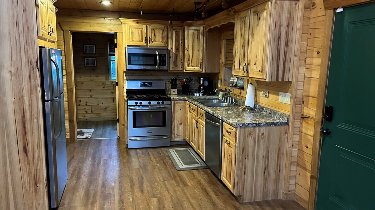Escape to the enchanting Blackberry Lodge, a rustic PET FRIENDLY Amish-built log cabin nestled in the beauty of central Wisconsin. This idyllic lakefront retreat offers a serene getaway surrounded by nature's wonders. Nestled on seven acres of pristine nature, embark on adventures along the lighted trails that wind through the property. Kayak, canoe, paddleboat, paddle board, fish, swim, EXPLORE! At night, bask in the starlight under our custom limestone firepit, and relax in our steam sauna.