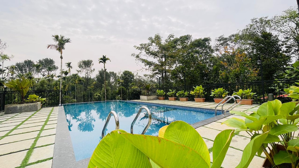 Bienvenido a Wayanad Palgrove Retreat 1, un refugio sereno enclavado en el corazón de exuberantes plantaciones de café. Rodeado de hermosos estanques y espesos bosques verdes, nuestro centro vacacional es el destino definitivo para relajarse, divertirse y relajarse. Este alojamiento está ubicado en el primer piso y ofrece fácil acceso a los pintorescos estanques y un acogedor lugar para fogatas para disfrutar de noches inolvidables. Experimenta la mezcla perfecta de naturaleza y lujo en Palmgrove Retreat.