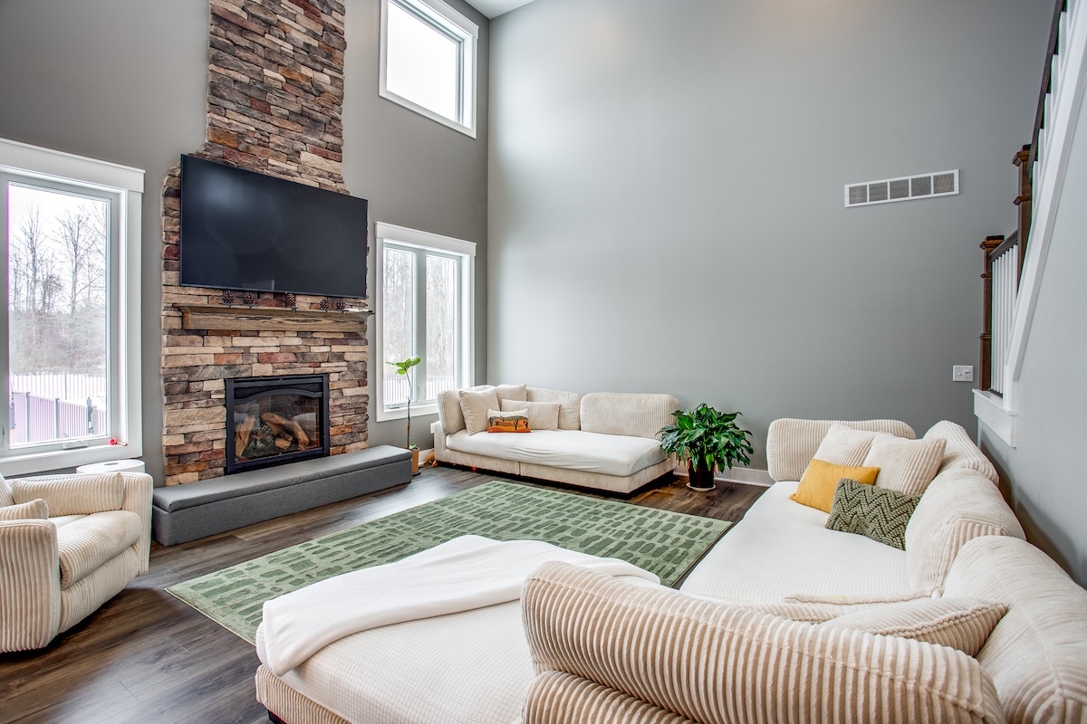 Escápate a una espaciosa y serena cabaña de 4,500 pies cuadrados enclavada en el corazón de Finger Lakes. Este impresionante refugio cuenta con 5 dormitorios, 3 baños y una sala de juegos, que ofrece la mezcla perfecta de encanto rústico y comodidad moderna. Entra con el fresco aroma de pino y disfruta de los servicios modernos. Relájate con un cóctel en el jacuzzi privado o explora las principales atracciones de la zona: cafeterías, cervecerías o un casino cercano. Si buscas relajación o aventura, esta es tu escapada ideal.