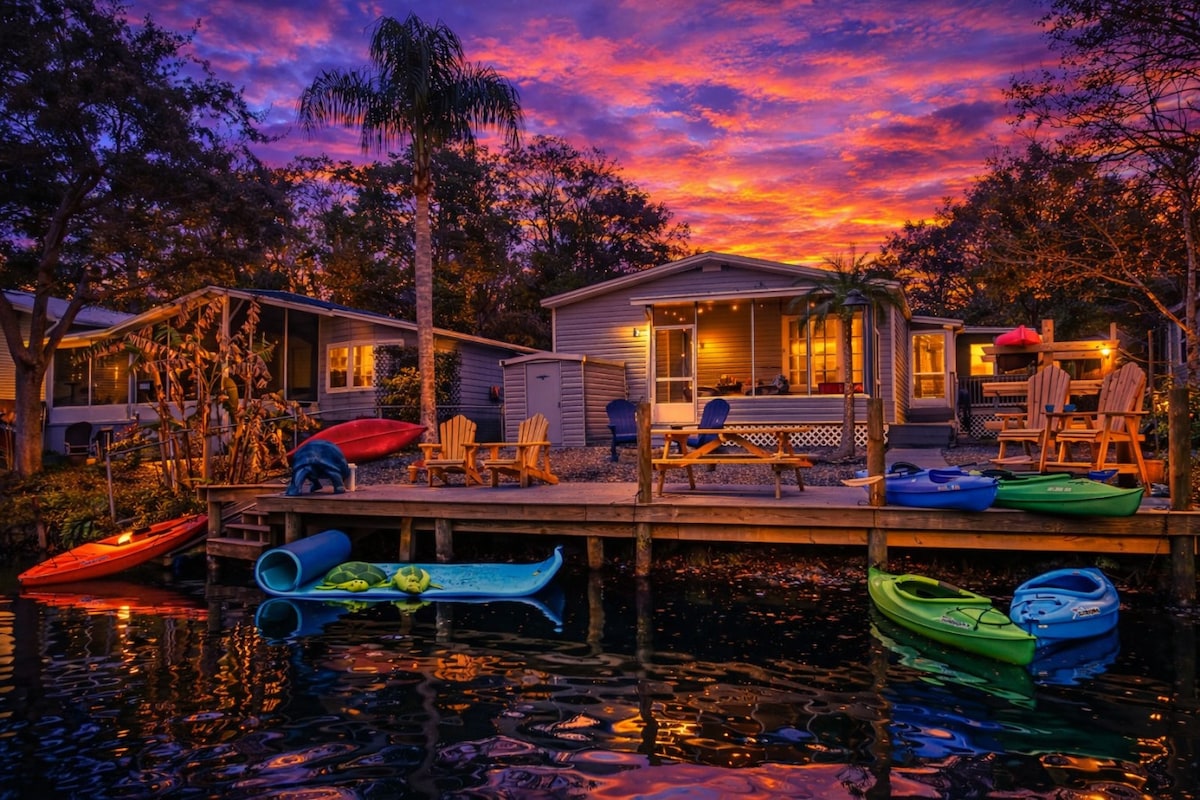 Disfruta de esta escapada perfecta y única en el río Weeki Wachee. ¡Un favorito local! Casa de 500 pies cuadrados totalmente amueblada con temática pirata, 1 dormitorio, 1 baño, cocina completa y sofá cama. Tiene todo lo necesario para crear recuerdos únicos. Nada con manatíes en el río cristalino de aguas termales. Tómate un café en el porche con vistas al agua y tu bebida favorita alrededor del fuego por la noche. Los kayaks están incluidos. A minutos de las sirenas de Weeki Wachee, Pine Island Beach y Homosassa Springs.
