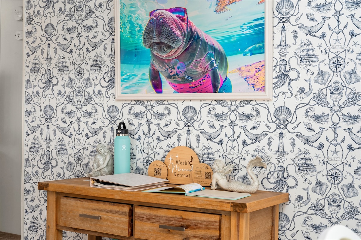 Nuestra acogedora casa recién remodelada se encuentra directamente en las aguas cristalinas del río Weeki Wachee, lleno de manatíes, delfines y peces. Disfruta del patio frente al agua mientras observas la vida silvestre. Sube al río principal a través de nuestra canoa, 8 kayaks y tabla de remo para remar rápidamente río arriba hasta Roger's Park, Hospital Hole, o continúa río arriba durante 6 hermosas millas de aguas azules claras. El golfo de América está a solo 1,5 millas río abajo. Trae tu barco y amárralo a nuestro muelle flotante utilizando la rampa para barcos de 9' en el sitio.