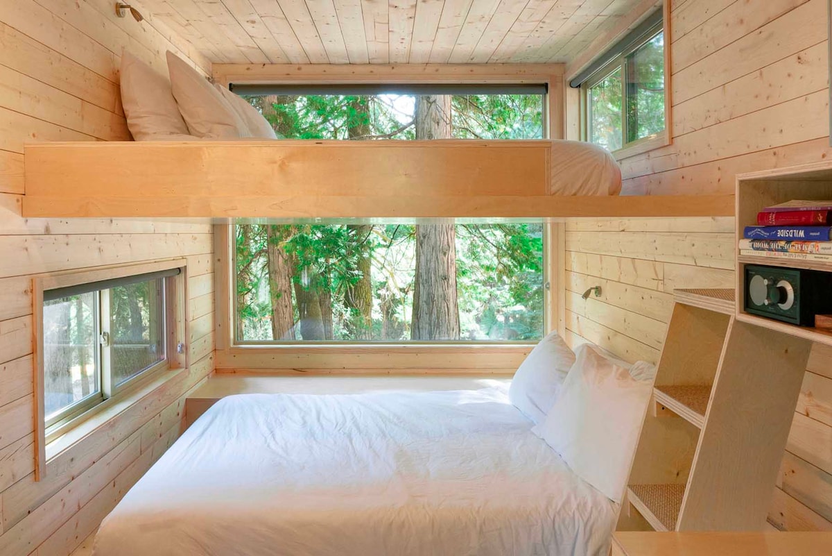 «Little Cabin» es un refugio único y aislado enclavado en una ladera privada. Cálida y acogedora, con zonas de entretenimiento interiores y exteriores, el ambiente es acogedor y divertido. Los hermosos interiores rústicos se destacan con un colorido diseño moderno y comodidad en cada rincón. Ya sea una escapada o un viaje de negocios, tu estancia en «Little Cabin on the Hill» será un refugio memorable y bienvenido. • • El camino de grava es empinado, con estacionamiento tanto en la parte superior como en la inferior del camino.