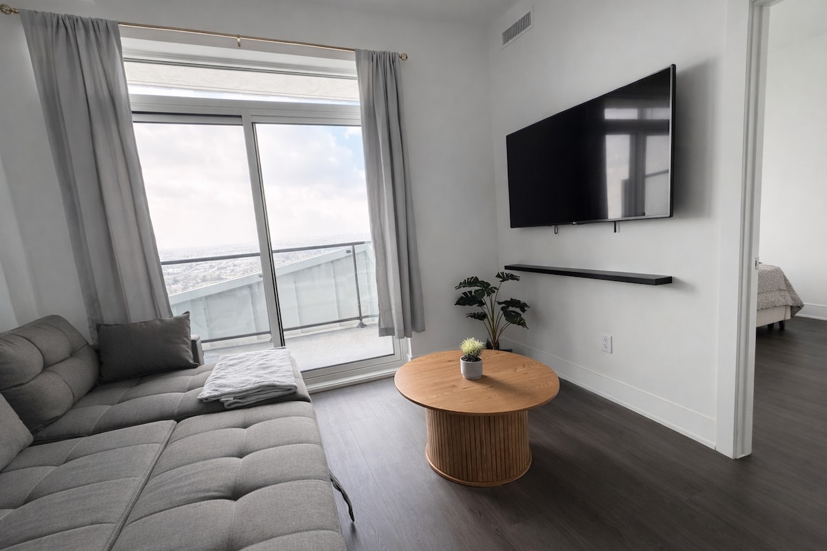 Welcome to Downtown Luxury Living in a brand new Kitchener condo! It's the perfect place to wind down and make yourself at home. 🏢 Premium amenities: gym, spa, bowling, sauna, & more 🚗Free underground parking 🛏️ Queen bed + sofa bed ♿ Spacious, wheelchair accessible layout 📍 Walk to groceries, LRT, restaurants 🔐 Self check-in 🌇 Beautiful city views from the 22nd floor 🪟 Floor-to-ceiling windows Our profile has a 4.9-star rating⭐— we have 145+ reviews that speak for themselves!