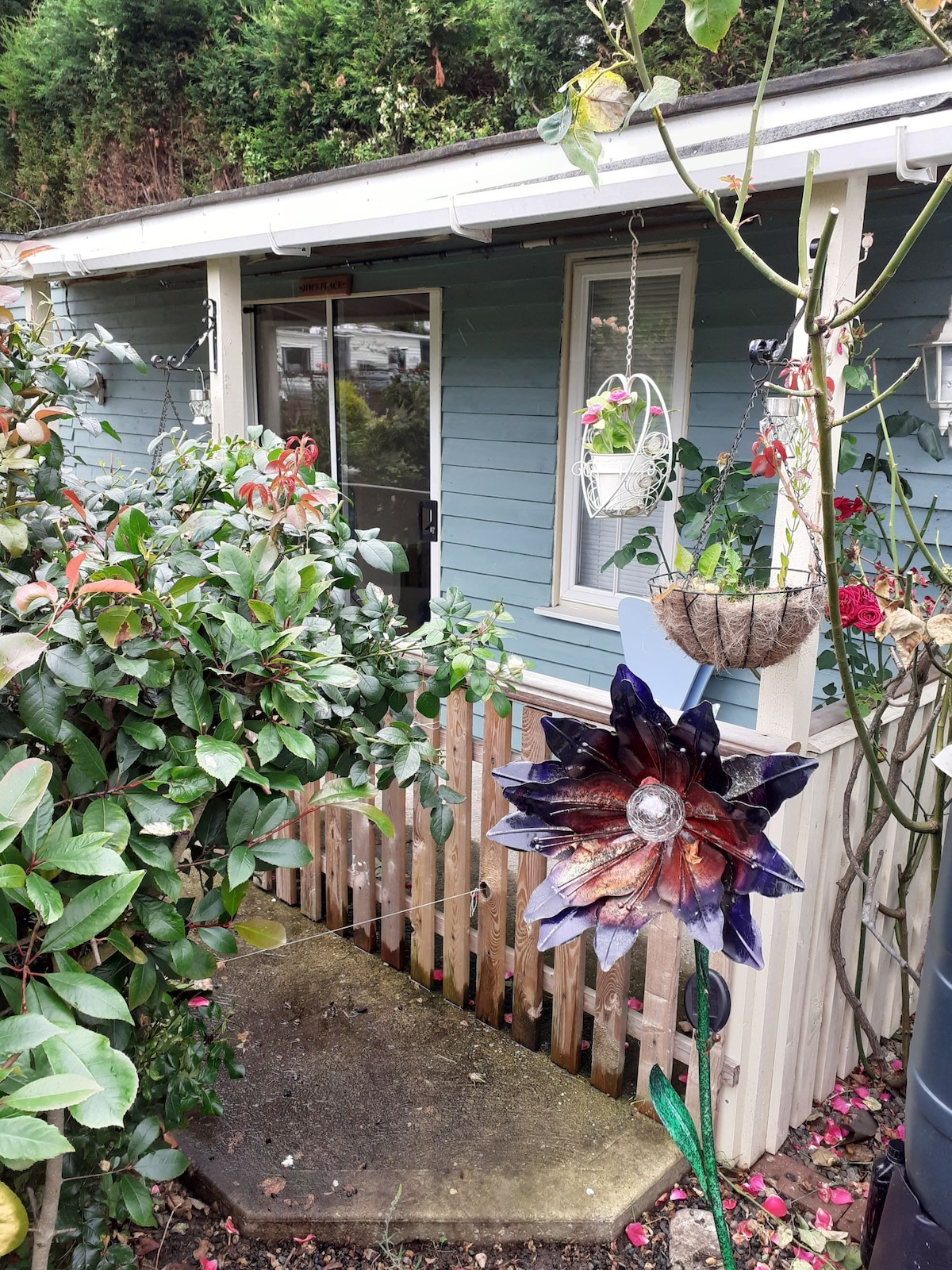 Un refugio tranquilo que ofrece paz y privacidad en un edificio independiente dentro de nuestro gran jardín. Puerta de entrada con cerradura con llave disponible a la llegada. El acceso wifi está incluido, lo que la mayoría de los huéspedes han encontrado perfectamente adecuado. Desayuno de cereales, pan, leche y (si se solicita) salchichas, tocino, huevos, etc. para que cocines tú mismo a la hora que más te convenga. Aunque no hay una cocina completa, hemos proporcionado un pequeño horno.