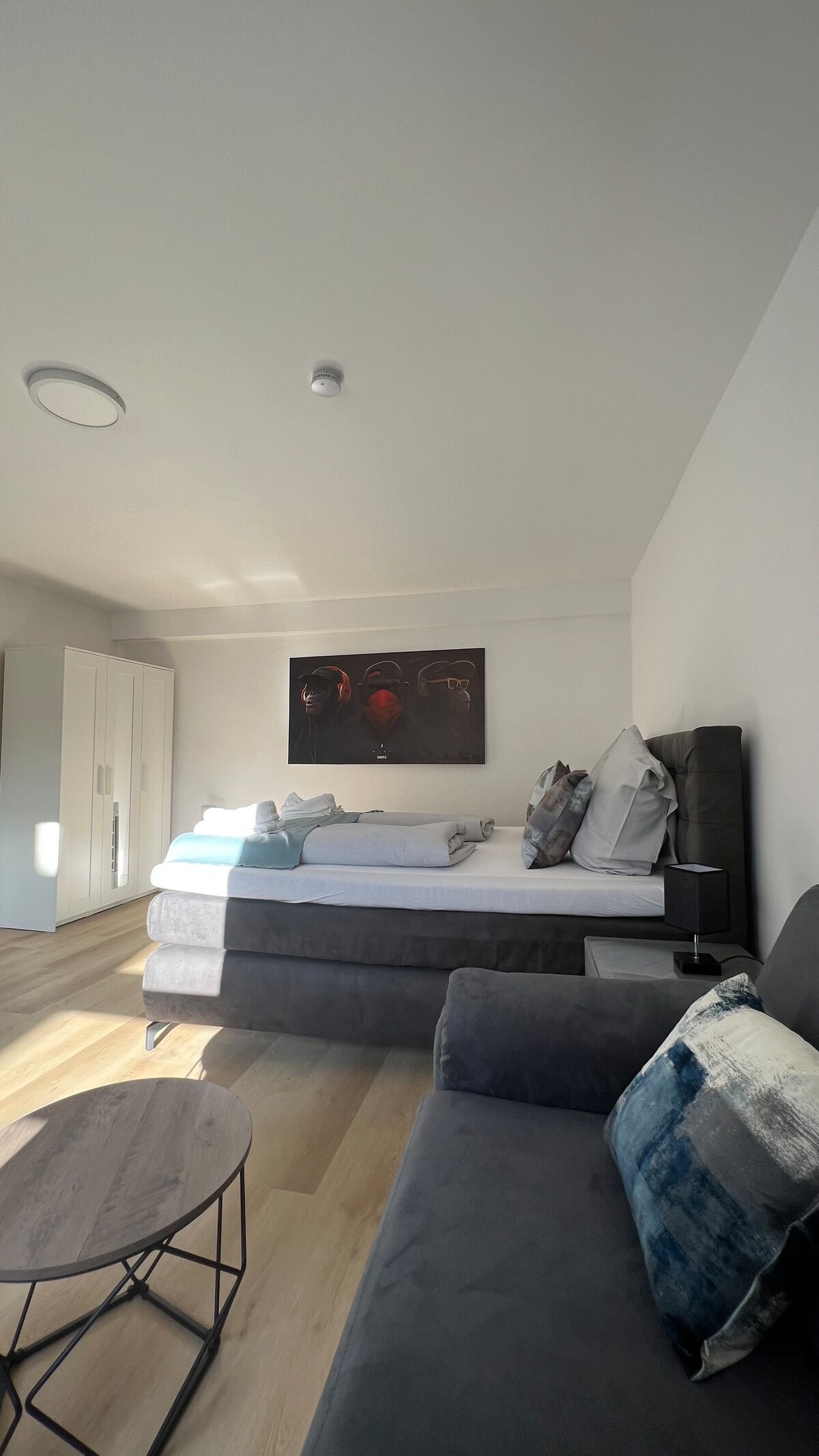 CABANA Apartments Modern and spacious serviced apartment in the heart of Oldenburg – ideal for business travellers and short or long stays. Perfect for professional projects, meetings or relaxed city living in the centre of Oldenburg. ✔️ Highlights: --> Workspace with ergonomic chair and high-speed WiFi --> Free parking --> 2 bedrooms + sofa bed --> Balcony with city view --> 95 m² like an apartment – no hotel room feeling --> Within walking distance of restaurants, shops and public transport