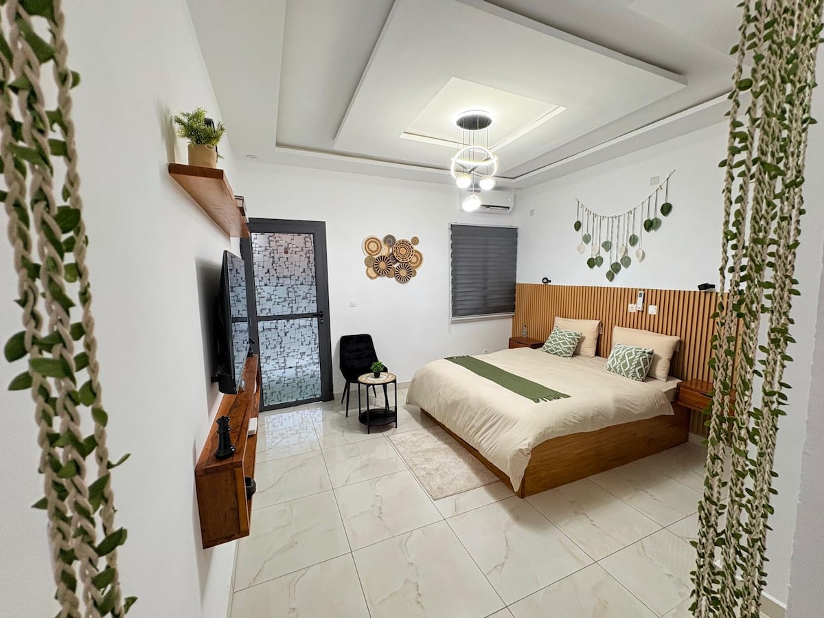 Yes, we have a pool. Escape to our elite en-suite residence, featuring four king-size bedrooms and beautifully curated luxury décor. Ideally located within walking distance to Spintex Palace Mall and China Mall, the property offers both comfort and convenience. We are just 10 minutes from the airport, 5 minutes from Accra Mall, and 10 minutes from Cantonments, East Legon, and Osu. Welcome to one of the most convenient and prestigious locations in Ghana.