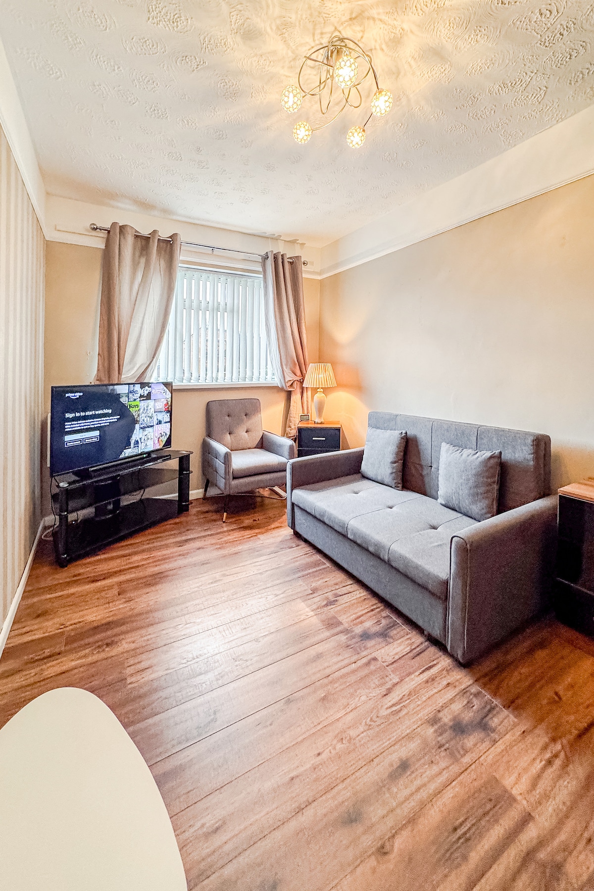 Apartamento moderno de un dormitorio en Walsall Este elegante y cómodo apartamento de un dormitorio está a solo 5 minutos a pie del centro de la ciudad de Walsall, ofreciendo comodidad y vida moderna en uno. El espacio cuenta con una decoración contemporánea, una cocina privada totalmente equipada y una acogedora sala de estar con televisor inteligente y wifi de fibra rápida, perfecta para relajarse después de un día ajetreado. Los huéspedes también disfrutarán - Estacionamiento gratuito. -fácil acceso -smart tv - Wifi. -Aspecto nuevo y moderno - Cocina privada.