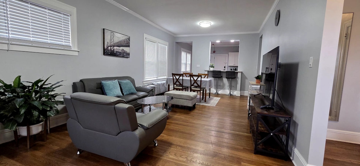 ¡Te damos la bienvenida a nuestro encantador y elegante apartamento en la planta superior, perfecto para un refugio acogedor! Disfruta de la privacidad de tener todo el espacio para ti. Accede al apartamento directamente a través de la entrada trasera, subiendo la escalera al aire libre. Estamos convenientemente ubicados a solo 10 minutos en coche del aeropuerto internacional de Bradley. En el interior encontrarás: - Una habitación cómoda con una cama tamaño queen, con sábanas limpias. - Una cocina totalmente equipada, equipada: Ollas, sartenes, platos para hornear, etc. Lavadora y secadora