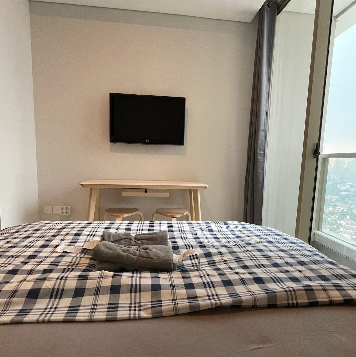Disfruta de una experiencia elegante en este lugar céntrico. El departamento Green Sedayu está integrado con Green Sedayu Mall con muchas instalaciones en el interior. También está muy cerca del aeropuerto. Entra en tu acogedor refugio y ser recibido por un encantador balcón privado y una gran ventana que muestra impresionantes vistas de la ciudad. ¡Relájate y disfruta de la estadía! (La piscina y el gimnasio están disponibles para un alquiler mínimo de 6 meses🙏)