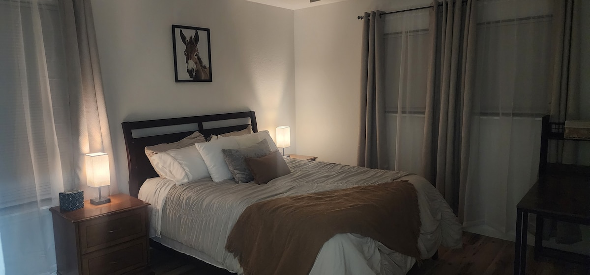 ¡Bienvenido a su refugio privado en el oeste de Texas! Esta unidad independiente está diseñada para ofrecer comodidad, privacidad y conveniencia. En el interior, encontrarás una lujosa cama tamaño queen, lavadora y secadora en la unidad, una cocina compacta con encimera y refrigerador, además de un televisor inteligente e Internet de fibra para el entretenimiento y la productividad. Cada unidad está completamente separada, lo que significa que no hay paredes compartidas ni ruido de los vecinos, solo paz y tranquilidad durante tu estancia. Ubicado cerca de restaurantes, tiendas y las principales carreteras de Odessa.