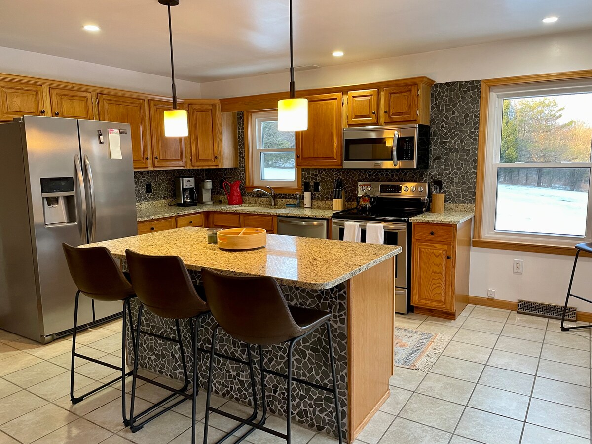 Take it easy at this unique and tranquil getaway. Perfect for one or two Adults. Comfortable King Size Bed, private bath, kitchenette (not a kitchen) with airfryer/toaster oven, microwave and keurig. Take time away from the hustle and bustle and stay closer to nature in this lovely private suite. Linens, towels and numerous kitchen items provided. Plenty of popular activities and scenery in the surrounding towns and villages. Complimentary WIFI is available but can be unreliable.