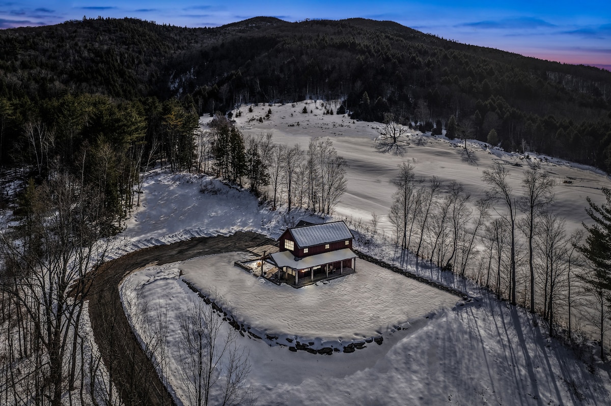 On a cold winter morning Wake up in a luxurious bed in a stylish cabin with panoramic Vermont views. Hot coffee mug warming your hand, step out to the porch, look at faraway hills. Snowshoe/slide/talk/play with your favorite people/animals. Or jump in your car to Okemo/Magic Montain/Killington for a day on the slopes. Take a scenic drive to Woodstock, Simon Pearce, Okemo, or the Harpooon Brewery. Kick back with a night around the firepit stargazing Our Red House welcomes you.