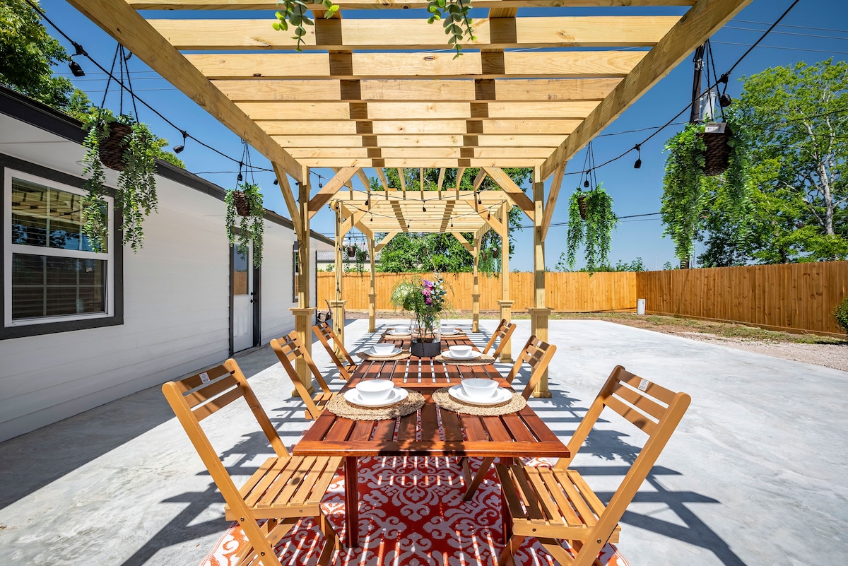 ¡Experimenta la diferencia que el diseño puede hacer en nuestra casa personalizada que diseñamos y construimos para nuestros huéspedes! 1800 pies cuadrados, 3 dormitorios, 2 baños, capacidad para 14 personas. En el corazón del barrio chino, acceso inmediato a Westpark Toll & Beltway 8. ¡Se admiten bebés, niños y mascotas! Todos los elementos esenciales/servicios incluidos: cocina totalmente equipada, 2 camas tamaño king, televisores en todas las habitaciones, ropa de cama/sábanas de primera calidad, aperitivos/bebidas de cortesía, artículos de aseo, espacio de trabajo dedicado, lavadora secadora, puertos USB en todas partes, wifi ultrarrápido y Netflix, Hulu, Disney+, ESPN+.
