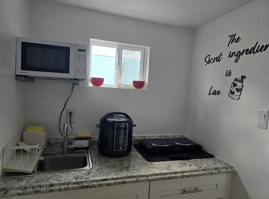 Bienvenido a nuestra casa ejecutiva independiente recién renovada, con muebles modernos, electrodomésticos de alta gama y lujosas comodidades. Relájate en la amplia sala de estar, cocina una comida gourmet en la cocina totalmente equipada o relájate en el gran patio con cómodos muebles de exterior. Te encantará la ducha de hidromasaje, la suave cama tamaño king y la ubicación tranquila. Disfruta de una entrada privada, dos plazas de aparcamiento dedicadas y un televisor inteligente de 65 pulgadas. Reserva ahora para disfrutar de una estancia cómoda y lujosa en West Palm Beach.