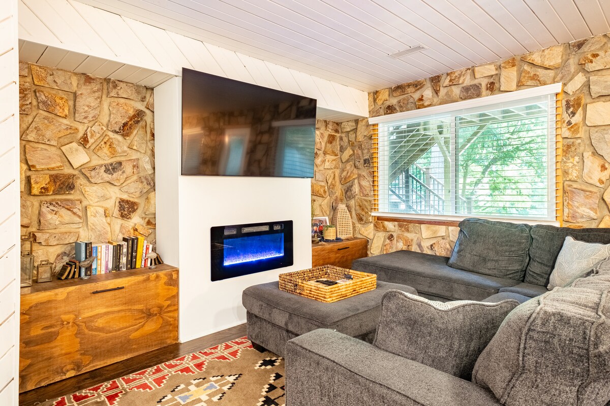 StayInOurSpace presents an unforgettable escape to a unique treehouse nestled among the trees. This retreat offers a cozy living space with stylish decor and a relaxing deck to wrap yourself in nature. Enjoy the warmth & bubbles of the hot tub, swing on the hammock or gather around the charming firepit for s'mores and heartfelt conversations. With every detail carefully curated, this treehouse is the perfect space to create memories. ✔ Hot Tub ✔ Fire pit ✔ Hammock Learn more below!