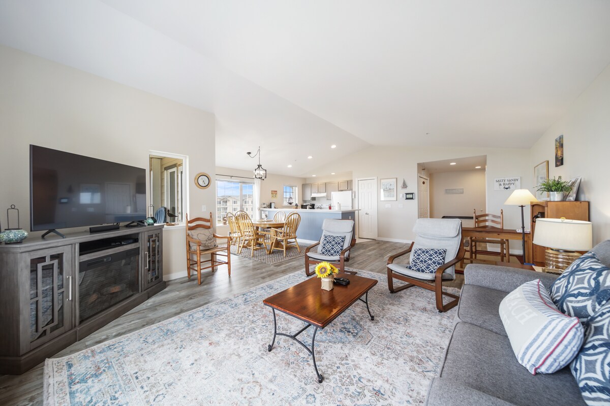 Nuestro cómodo apartamento de 2 dormitorios y 2 baños completos, en el segundo piso con ascensor, se encuentra en el encantador complejo Westport by the Sea. ¡A pocos pasos de tus pies en la arena! Tiene vistas al Parque Estatal y a solo unos minutos a pie del faro más alto de Washington. Ubicado en uno de los edificios más nuevos con excelentes comodidades como cargador de vehículos eléctricos, enorme bañera de hidromasaje, piscina de agua salada al aire libre y jacuzzi, chimenea eléctrica, gimnasio, putting green, cancha de baloncesto, zona de barbacoa, etc. Consulta «otros detalles».