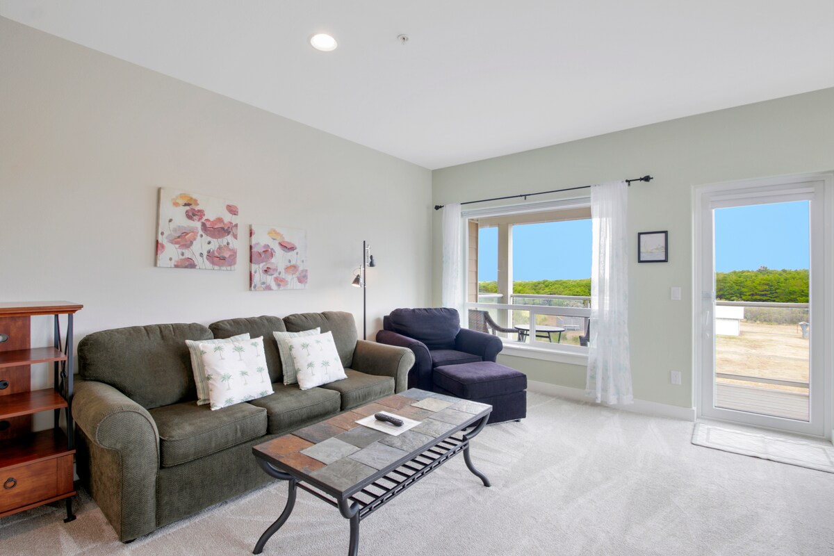 Ubicado en el último piso, este acogedor apartamento captura lo mejor del encanto relajado de Westport. El espacio es luminoso, está amueblado con esmero y es lo suficientemente acogedor como para sentirse como en casa.Entra en tu balcón privado para respirar el aire salado y escucha el ritmo relajante de las olas en la distancia. Aunque no se puede ver el océano, lo escucharás más allá de las dunas, un suave recordatorio de que la playa está a solo unos pasos. Al final del día, sumérgete en la bañera de hidromasaje o dirígete a la terraza de la azotea para disfrutar de vistas costeras de 360 grados y una parrilla al atardecer. Los huéspedes también disfrutan de acceso a espacios comunitarios compartidos, como un gimnasio, una cancha de baloncesto y un parque infantil. Ubicada justo al lado del parque estatal Westport Light, esta casa se encuentra a unos pasos del sendero de la playa y a un corto trayecto en automóvil de los restaurantes de mariscos locales, el acuario y el museo marítimo.Ya sea que estés aquí para pasear por la playa, volar cometas o disfrutar de un momento de tranquilidad junto al mar, esta casa combina un interior modesto y acogedor con una vista que se roba el espectáculo.Distribución de las camas: Dormitorio principal: cama tamaño king (capacidad para 2 personas) Dormitorio 2: cama tamaño queen (2 personas)