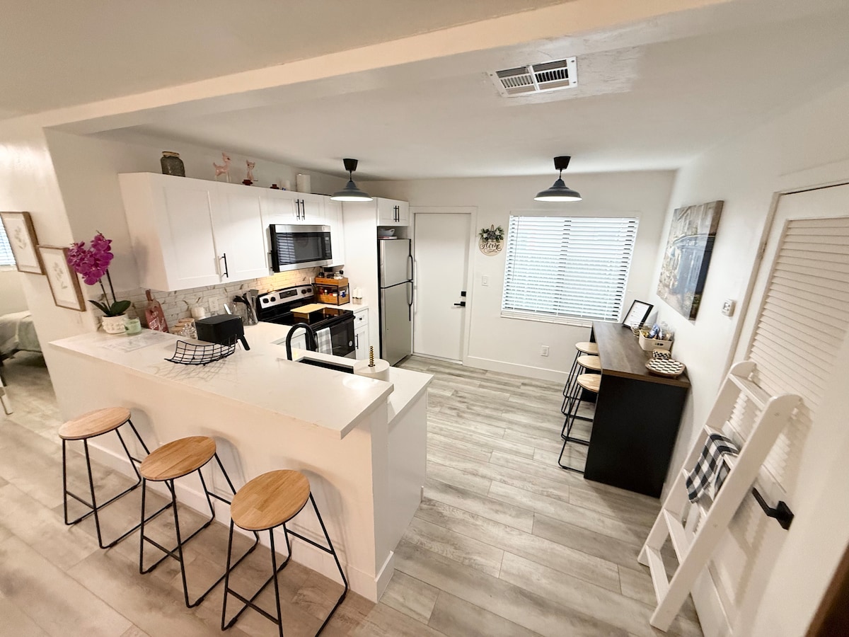Este estudio con entrada independiente es ideal tanto para viajeros de placer como de negocios que buscan un espacio tranquilo cerca de toda la acción. Habitación con aire acondicionado, cama cómoda, baño moderno y una pequeña cocina americana para comidas rápidas o descansos para tomar café. Con entrada privada, wifi de alta velocidad y Smart TV. Situado en una zona tranquila y segura a pocos minutos de las playas de Miami, Wynwood, el centro de la ciudad, el aeropuerto y las principales autopistas. ¡Perfecto para descansar o trabajar a distancia!
