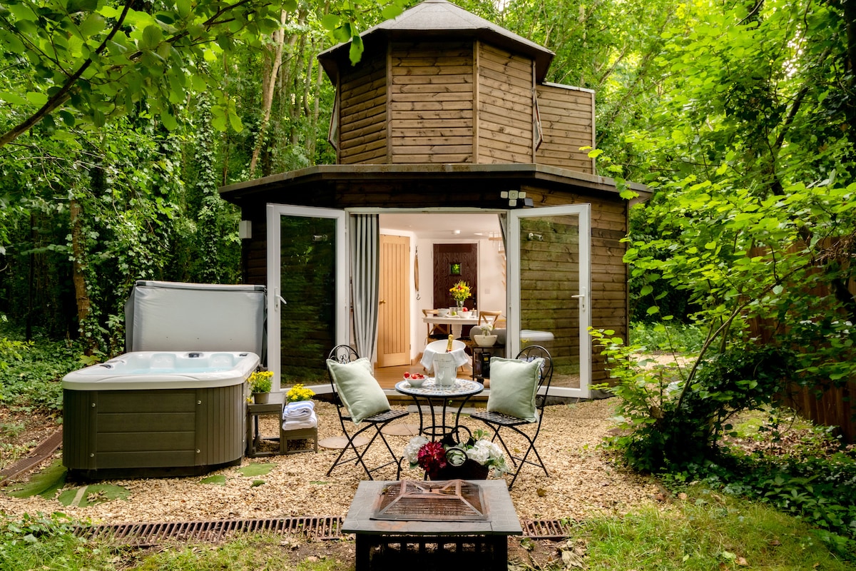 Escape to our unique luxury treehouse in the heart of Dorset, a secluded sanctuary designed for two. This stylish, multi-level cabin offers a private hot tub, fire pit, and 40 acres of private woodland. Disconnect and reconnect with nature in this one-of-a-kind retreat, complete with modern amenities for a comfortable and tranquil stay. • Private Hot tub • Fully Equipped Kitchenette • Private Garden • Smart TV • Ping Pong Table •Access to 40 acres woodland