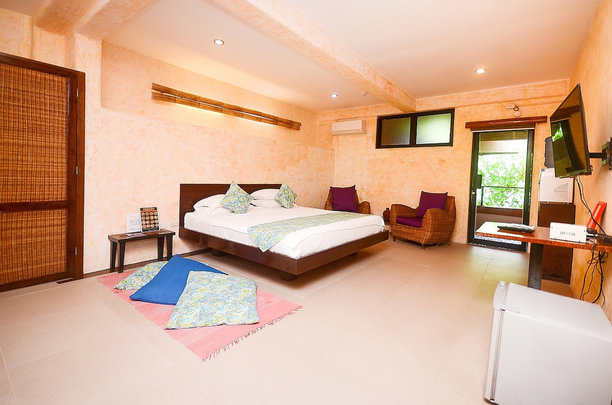 La luminosa habitación con terraza tiene vistas a un jardín tropical. Puedes disfrutar del océano y el horizonte con la puesta de sol desde nuestra terraza en la azotea del jardín con una cena romántica. Las playas vírgenes están a pocos minutos de nuestra ubicación. La reservación incluye desayuno de cortesía. Nuestro chef prepara platos locales y cenas de mariscos bajo petición . Es posible que esperes una experiencia única en una isla en nuestra propiedad boutique sostenible con solo 9 habitaciones/apartamentos. Operamos un generador de respaldo.