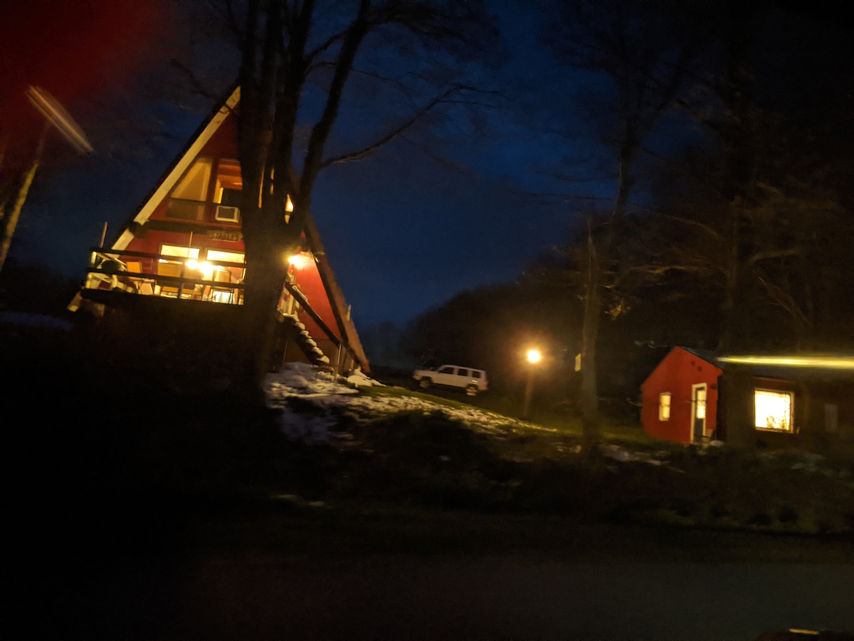 ¡Viaja en el tiempo a 1958 en esta joya arquitectónica! Esta moderna cabaña de vidrio y madera de mediados de siglo está a 300 metros de un pequeño lago encantador. La casa NO está en el lago en sí, pero está rodeada de árboles en un lugar encantador y aislado. La única calefacción es una estufa de leña... pero hay una sauna de barril de cedro para 4 personas en el bosque que es eléctrica. Un clásico remolque de viaje Spartanette de 1952 sirve como dormitorio adicional. Este es un verdadero refugio para el romance y la aventura.